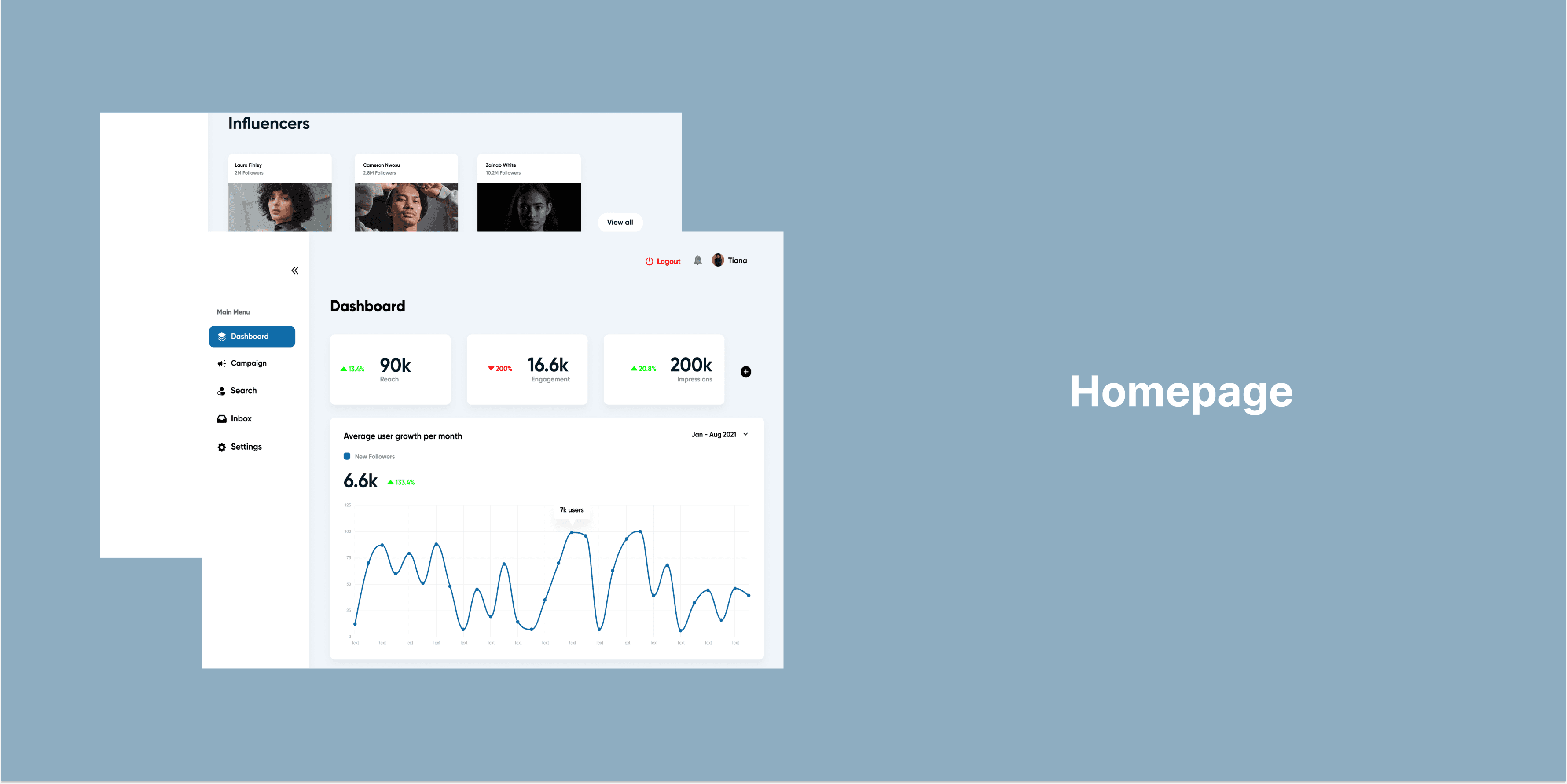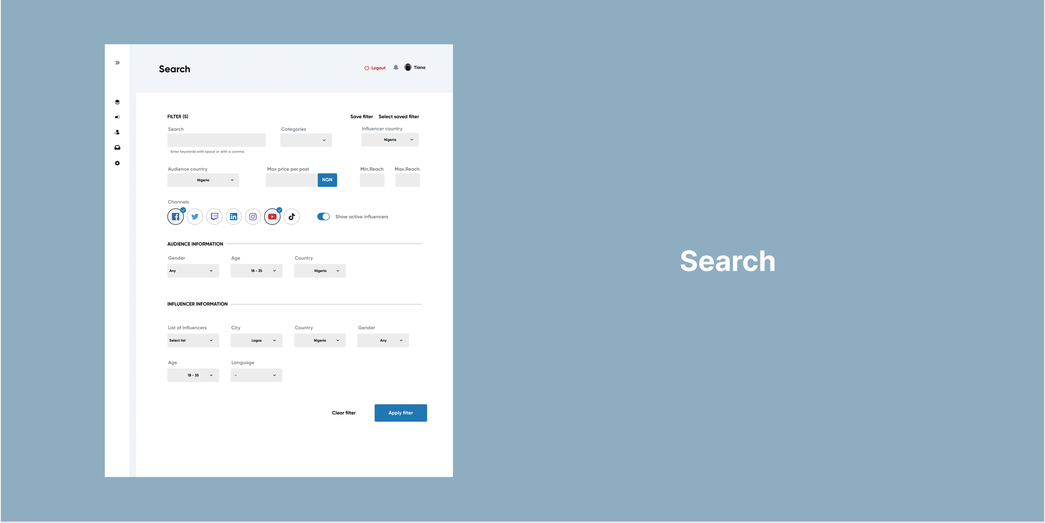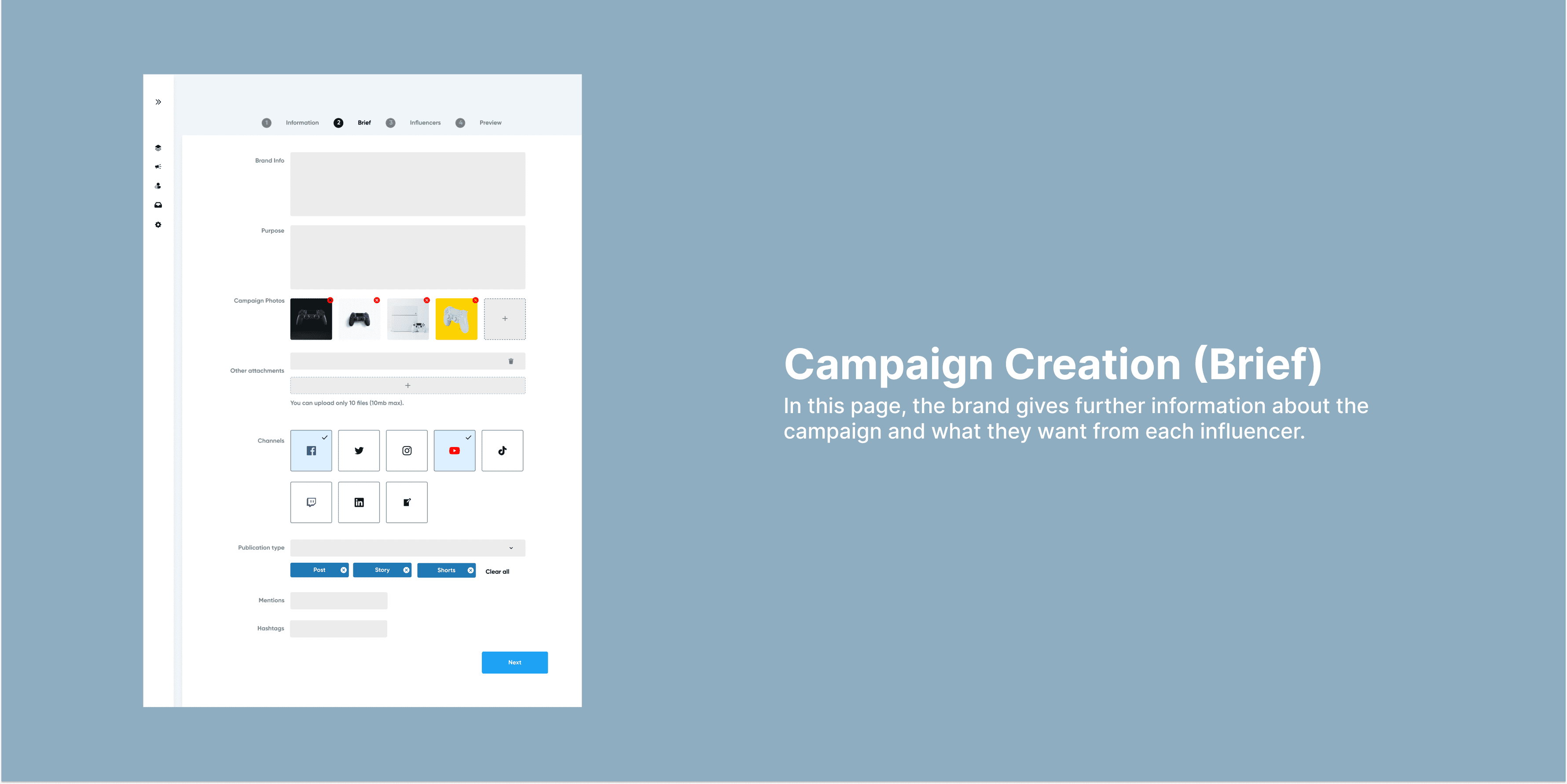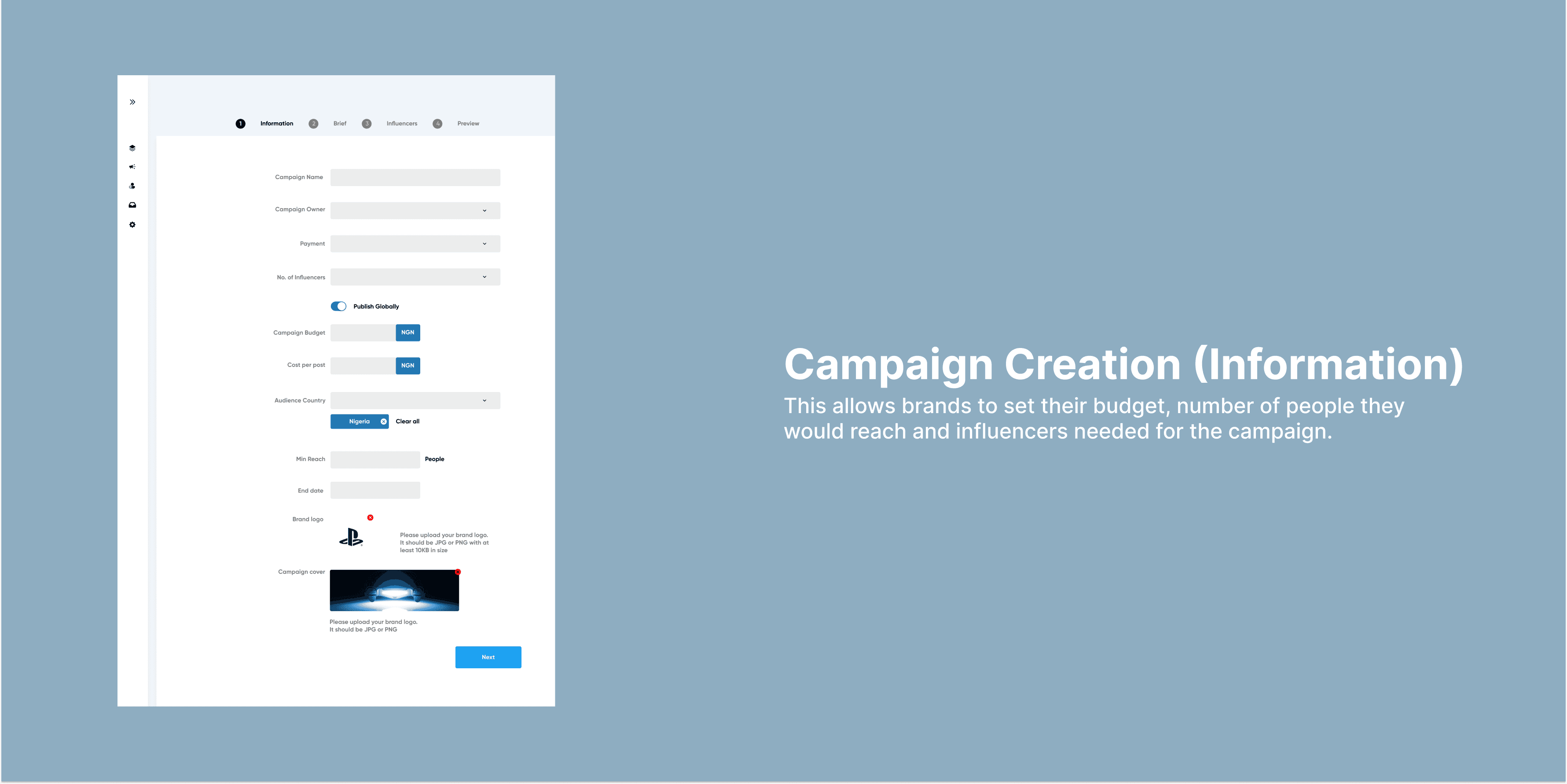 A brief was sent out to me to design an influencer marketing platform where brands or agencies can contract influencers that help them promote their goods and services. I wanted a solution that would be an all-in-one platform where influencers and companies can track their social media campaigns, and reach a wider audience too.