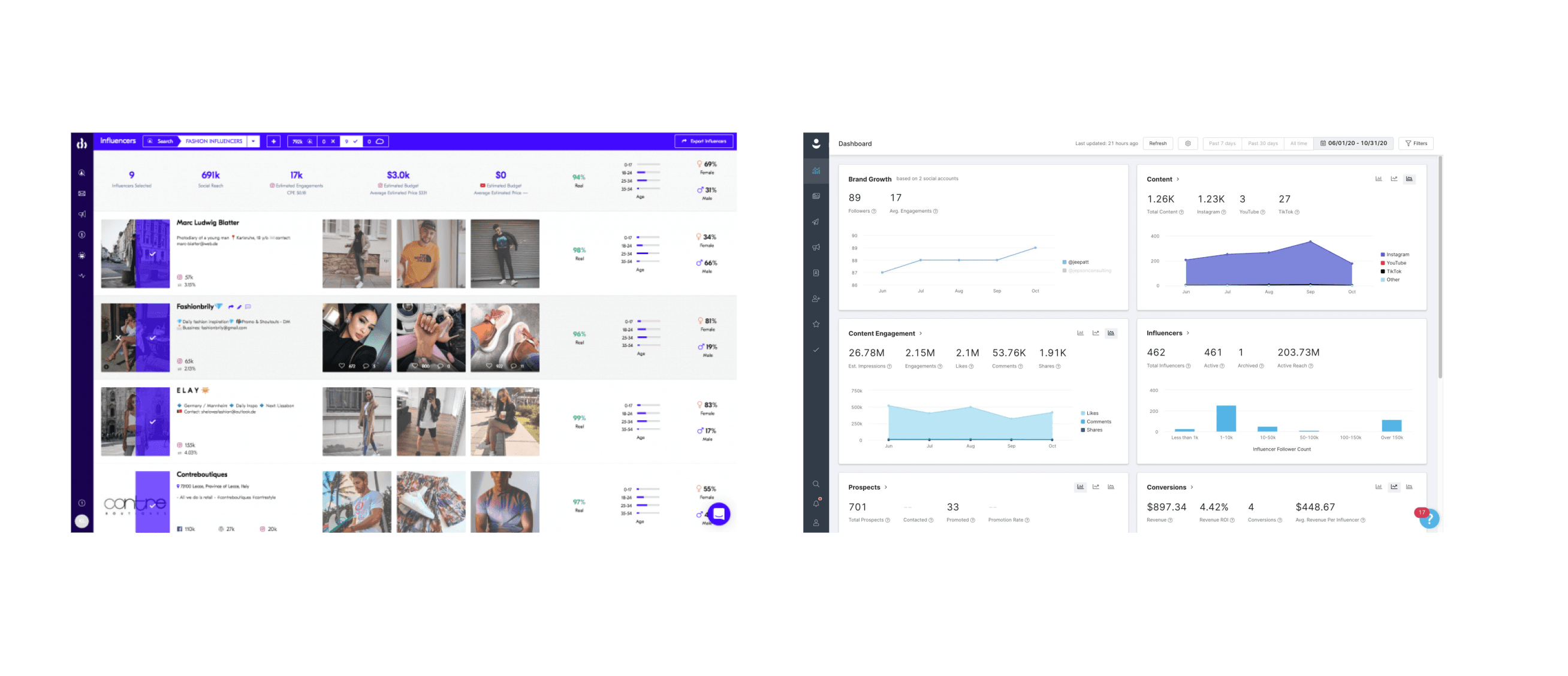 This is an influencer marketing platform that connects both brands and agencies with influencers. The sole aim of the SaaS is to make influencer marketing easy and straightforward for both clients and influencers. It helps companies build better brands through influencer marketing and relationships.